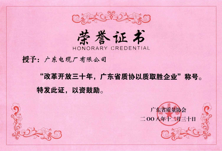 廣東電纜廠有限公司_廣東省質協以質取勝企業