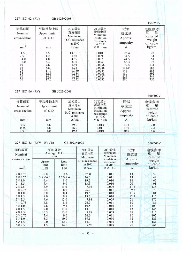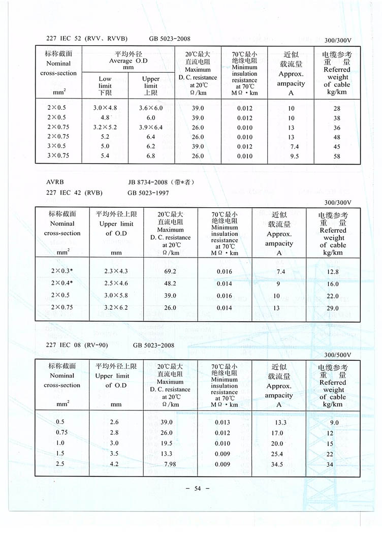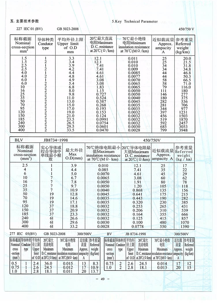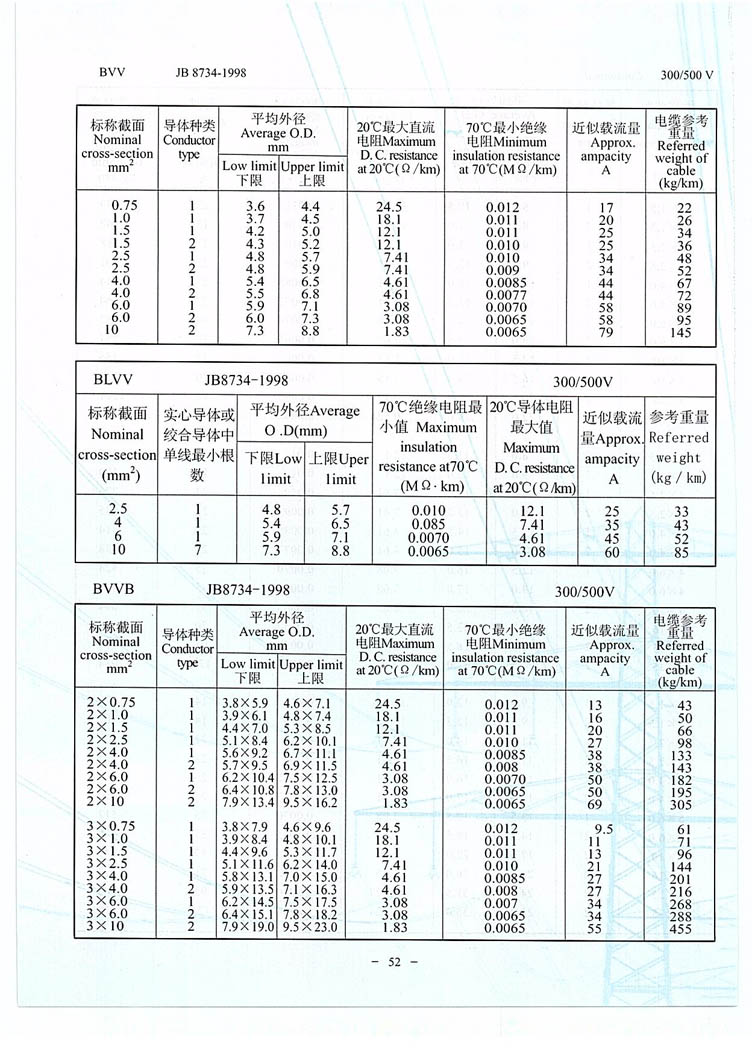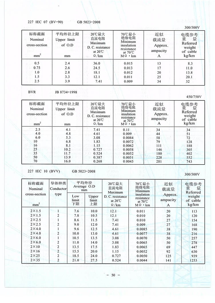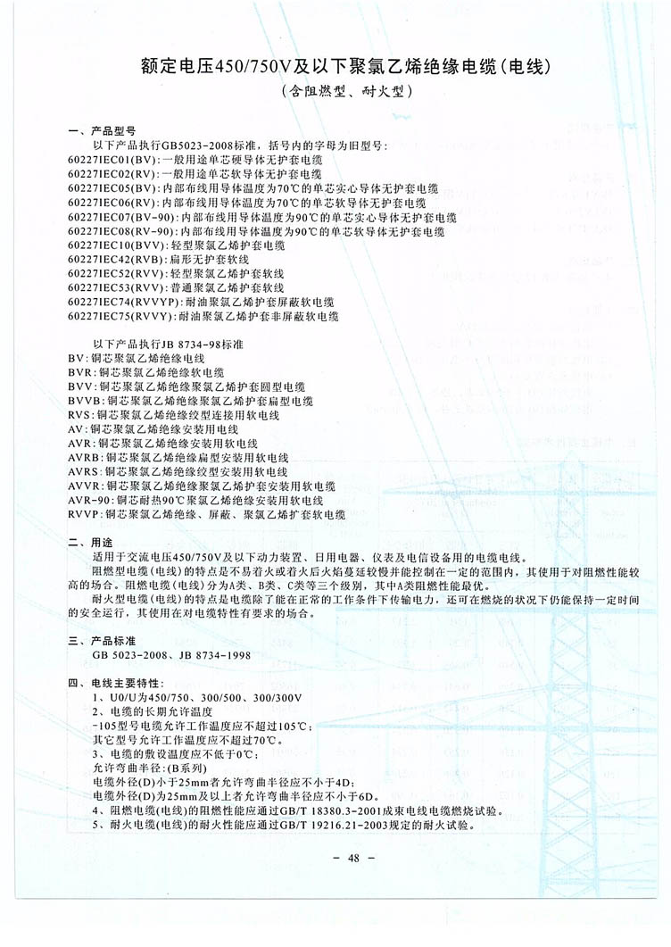 BV BVR BVV RV系列)額定電壓450/750V及以下聚氯乙烯絕緣電線(電纜)