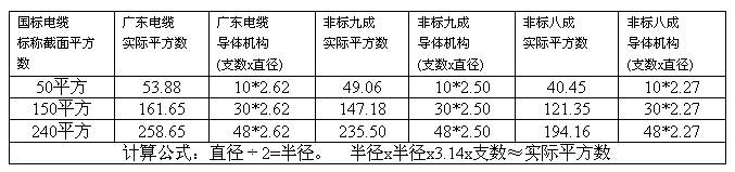 一般在廣東地區來說的話,如果在購買大于50平方以上的銅芯電纜就必須要注意啦,一些做非標電纜的廠家往往就是在
